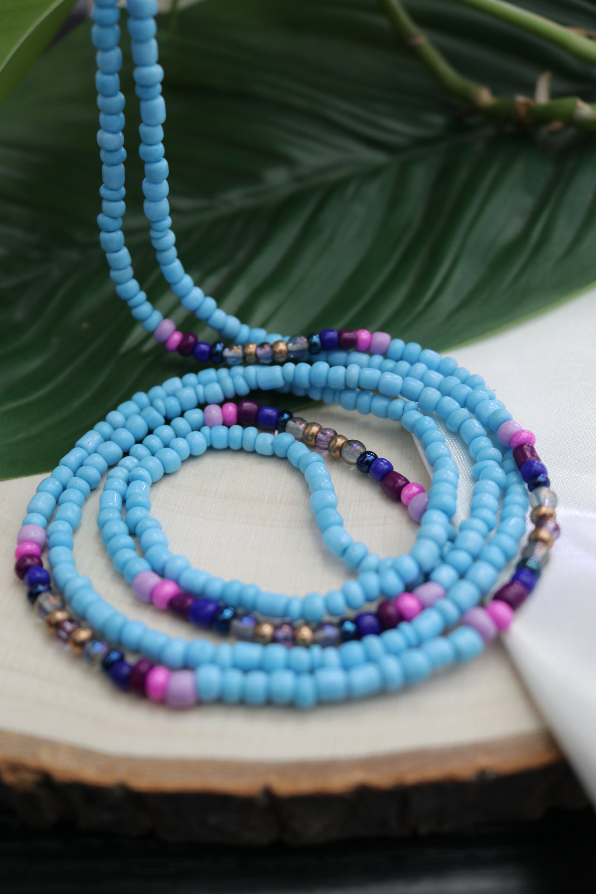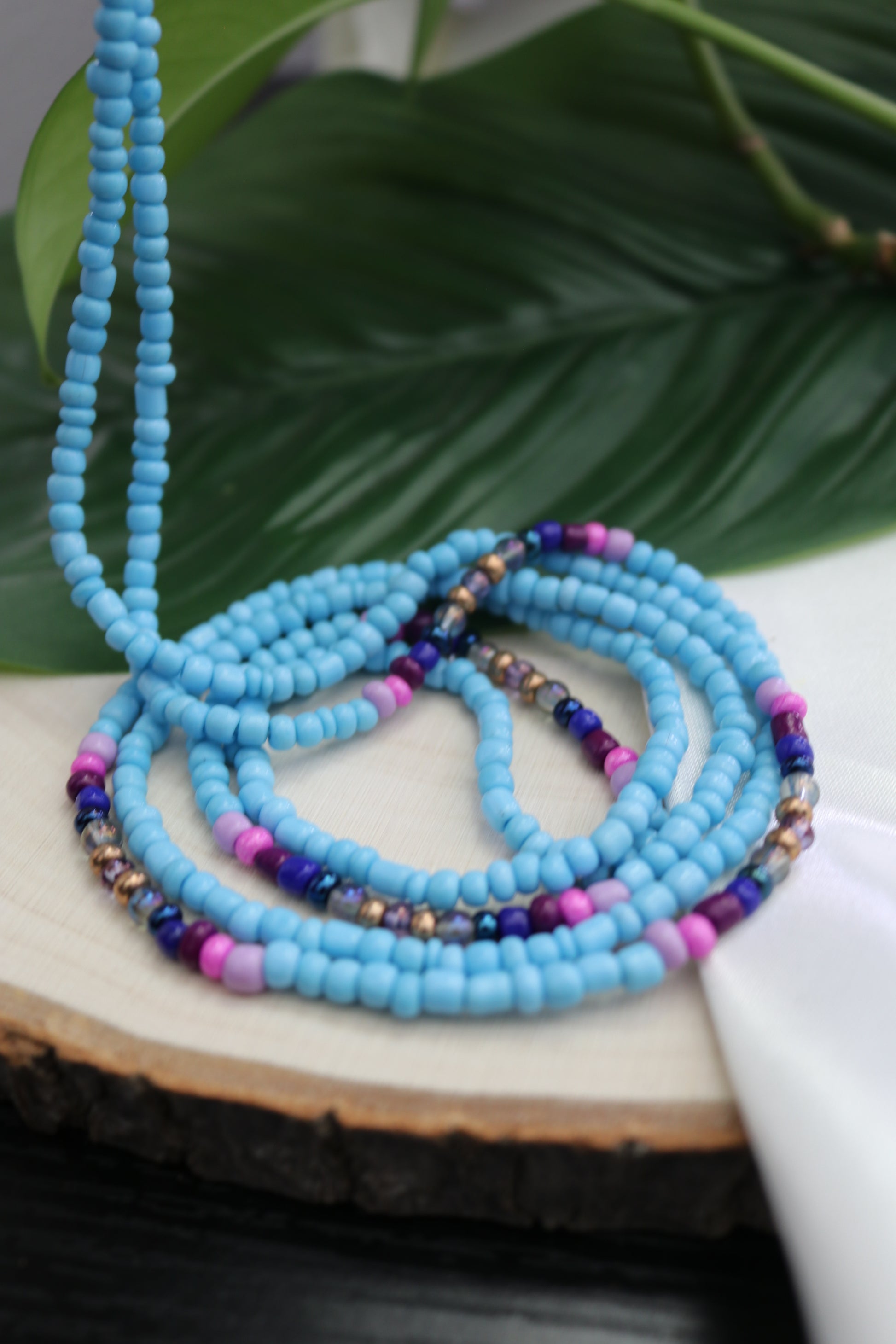 You can choose to wear your beads on your waist line, high hip or low hip depending on your personal preference. Make sure to leave some wiggle room when tying your beads, or ordering the ones with clasps.