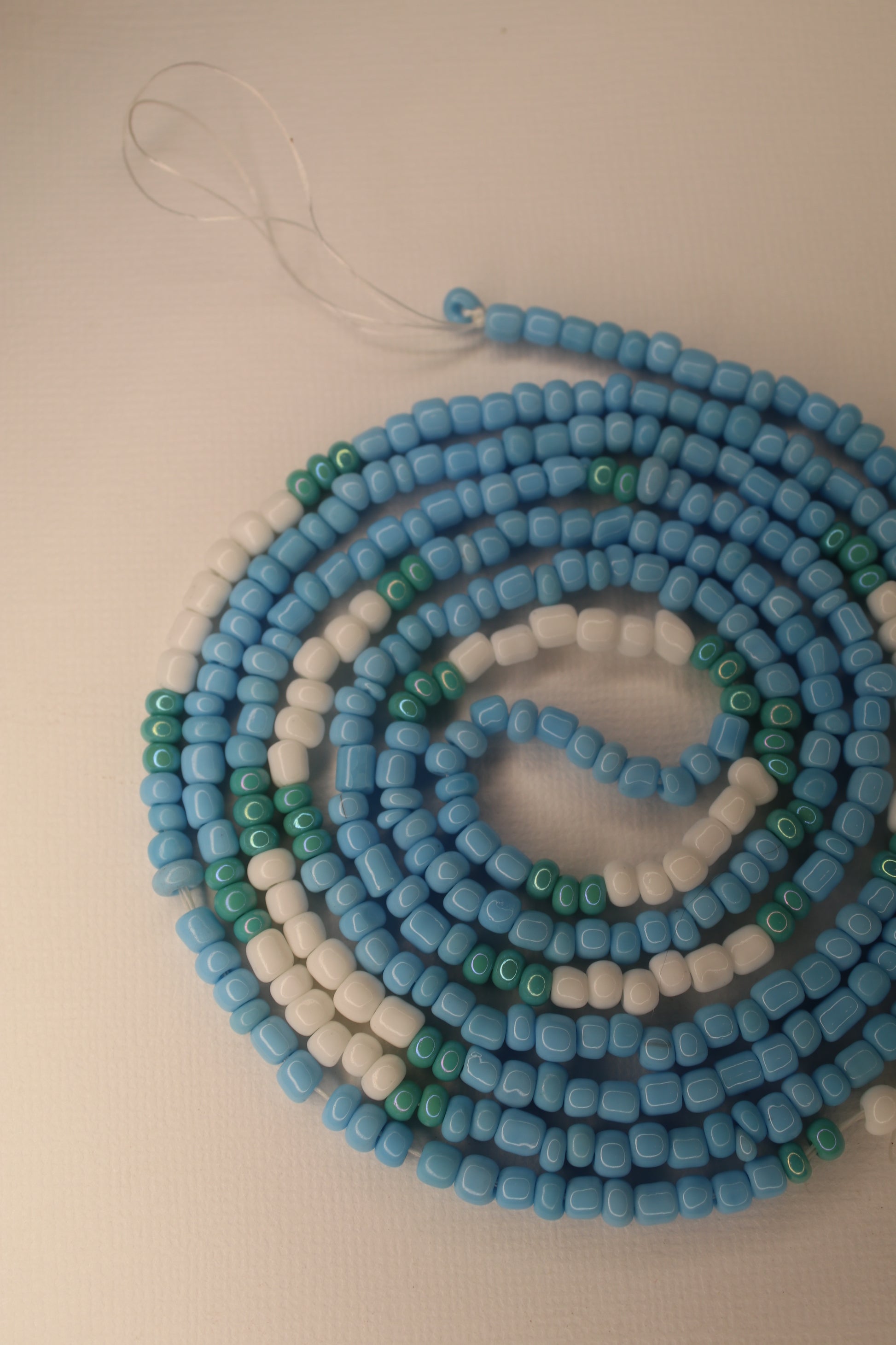 You can choose to wear your beads on your waist line, high hip or low hip depending on your personal preference. Make sure to leave some wiggle room when tying your beads, or ordering the ones with clasps.