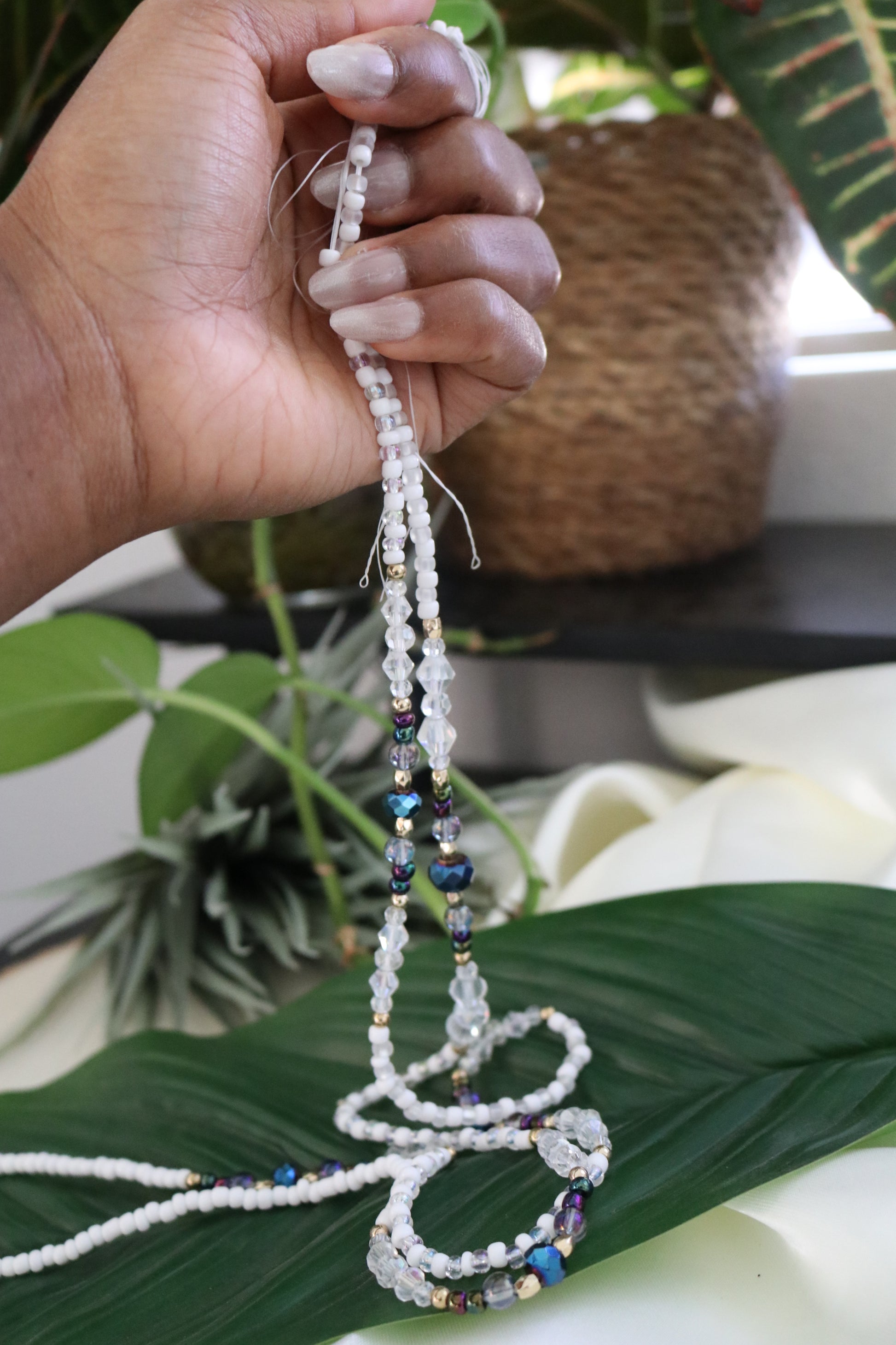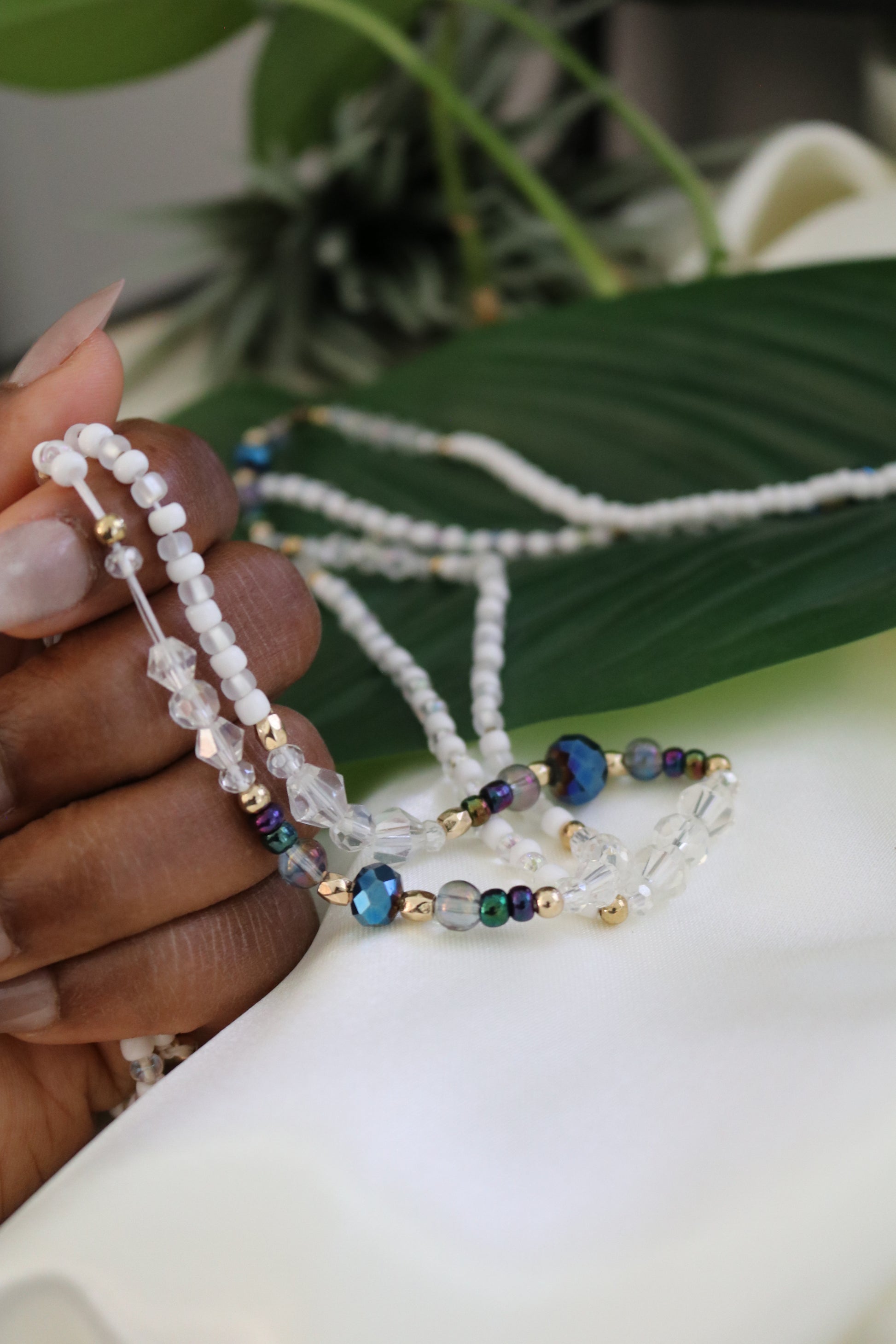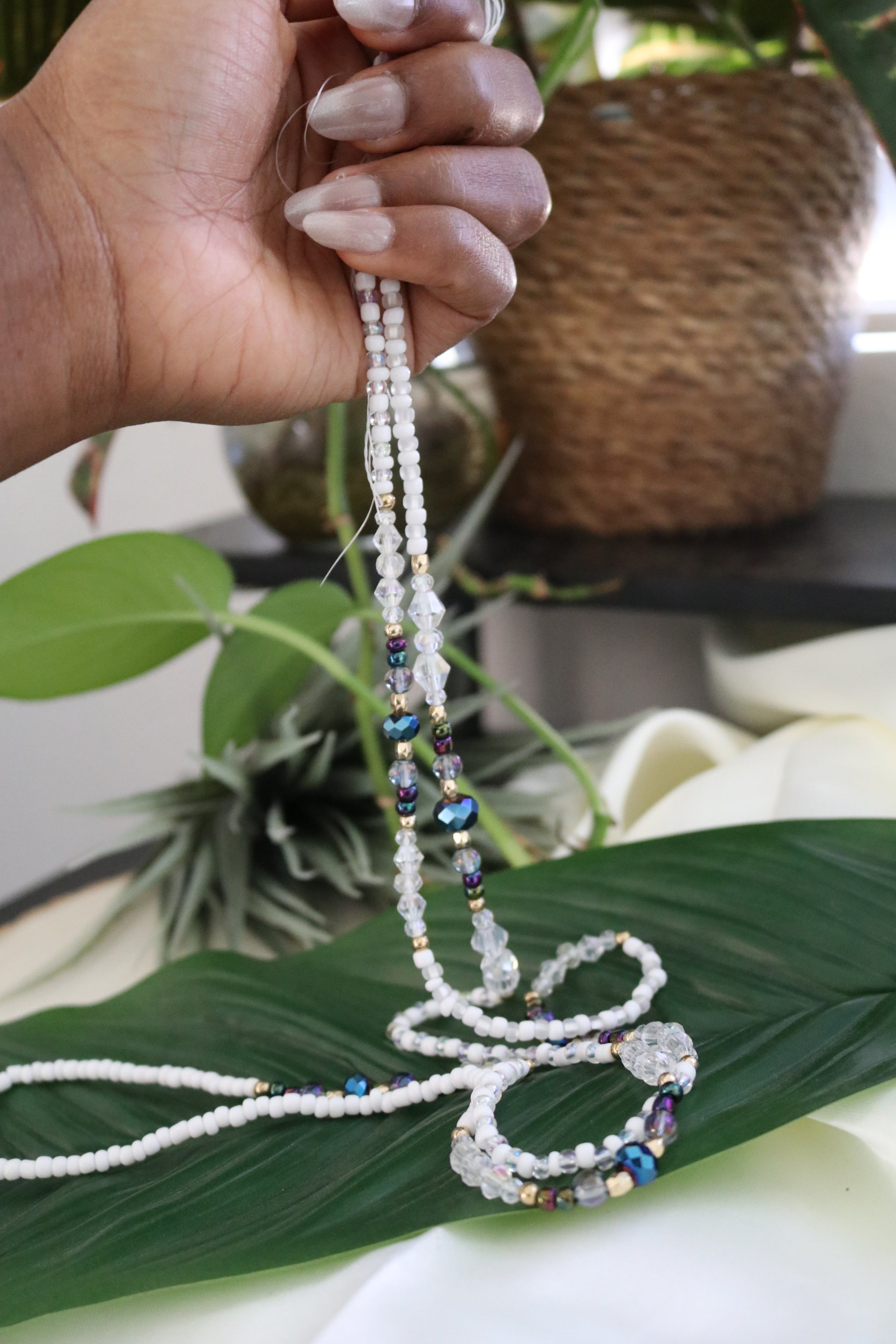 Waist beads are designed to be worn on your waist, on your hip or on your panty line. They are comfortable enough to be worn for long periods of time, even permanently; you might even forget that you’re wearing them! Some women wear their waist beads over their clothing, or with a crop top or swimsuit, while others choose to wear them under. If you choose to wear your waist beads under your clothing, do not worry as they are created to withstand the friction created by your clothing and still remain comfortable.