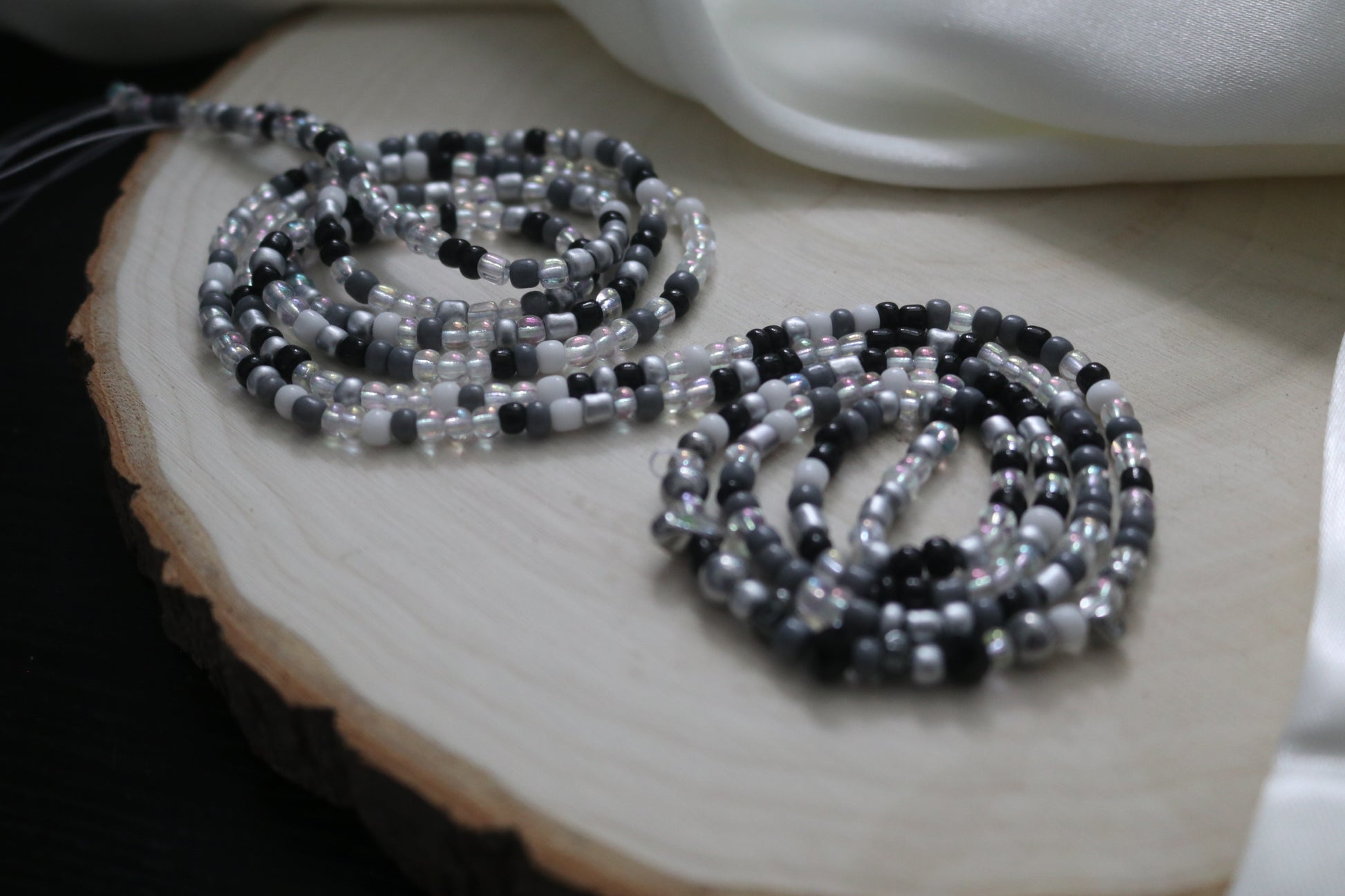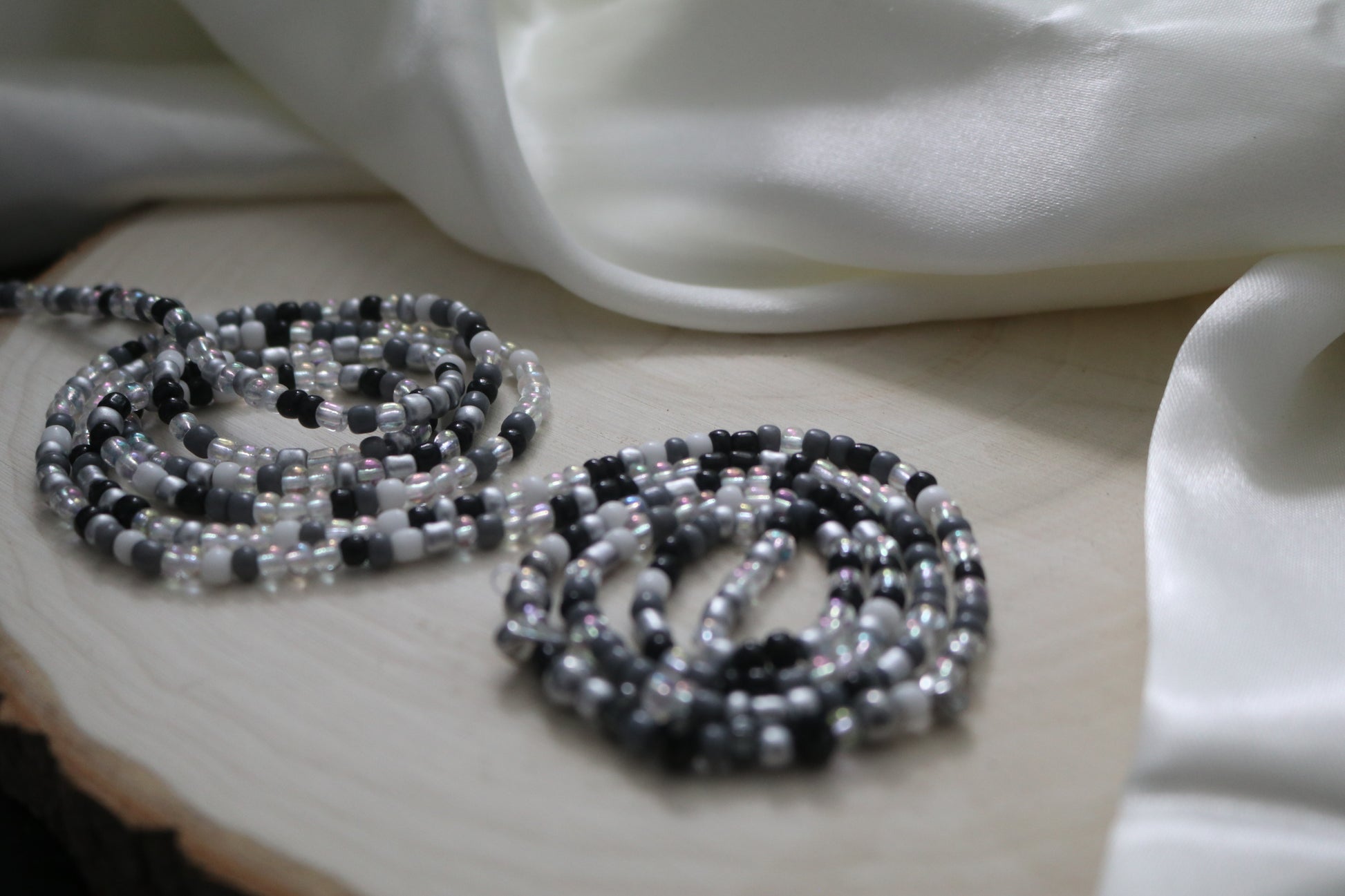 You can choose to wear your beads on your waist line, high hip or low hip depending on your personal preference. Make sure to leave some wiggle room when tying your beads, or ordering the ones with clasps.
