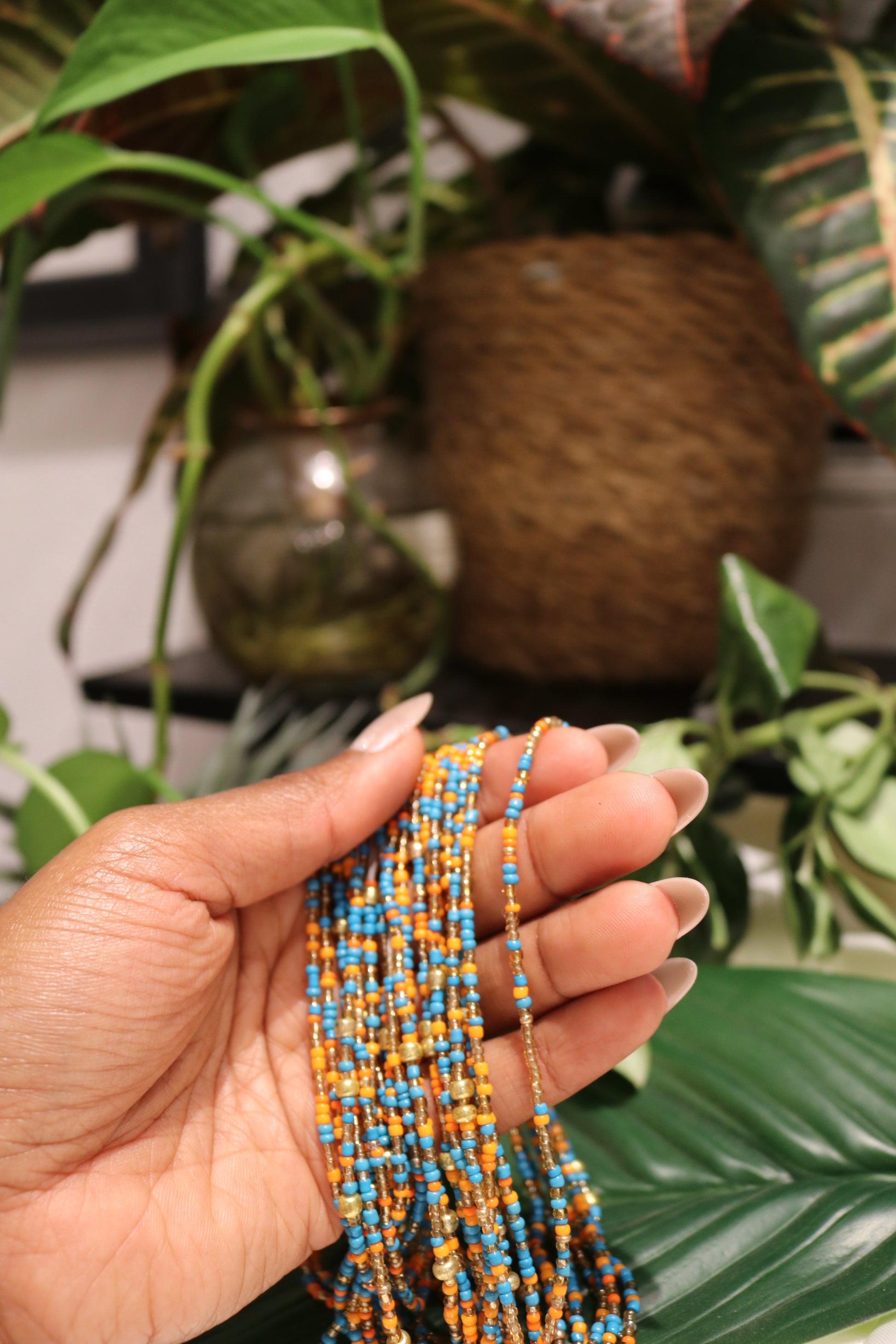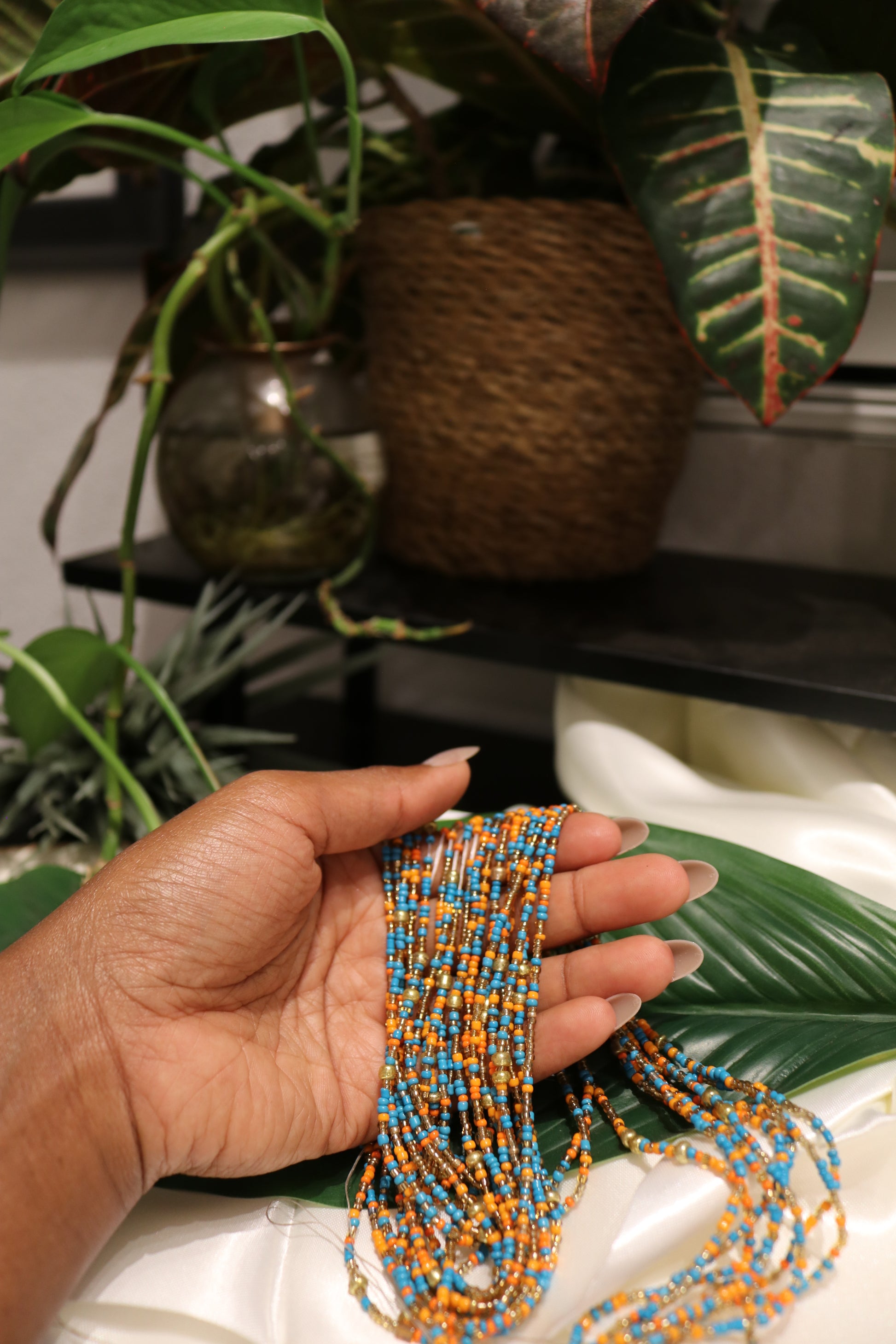 Waist beads are an African tradition that can be found all across the continent and throughout the diaspora. They have been used in various ways and have taken on a multitude of meanings including body shaping and awareness, lingerie/sensual adornment, coming of age initiations, wedding gifts/bride price, to indicate societal status, and to connect with your feminine essence.